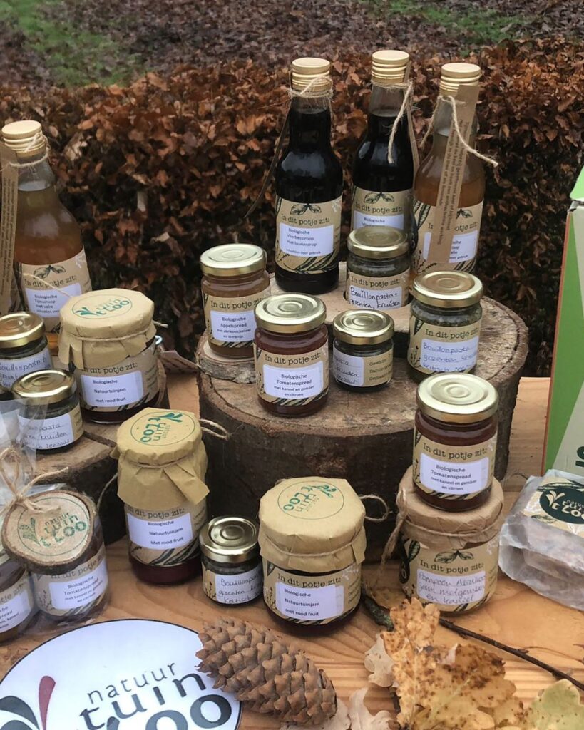 Jam, chutney of siroop bijvoorbeeld. Allemaal met ecologische ingrediënten en zoveel mogelijk uit onze eigen Natuurtuin.